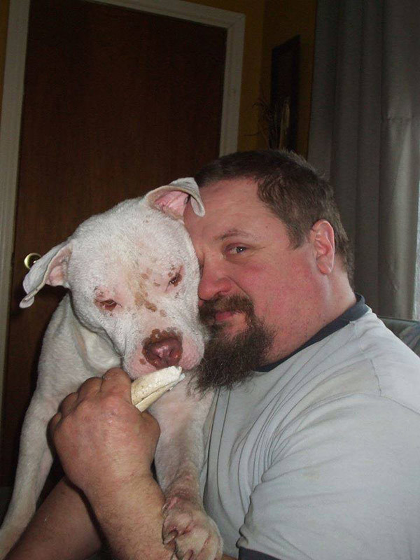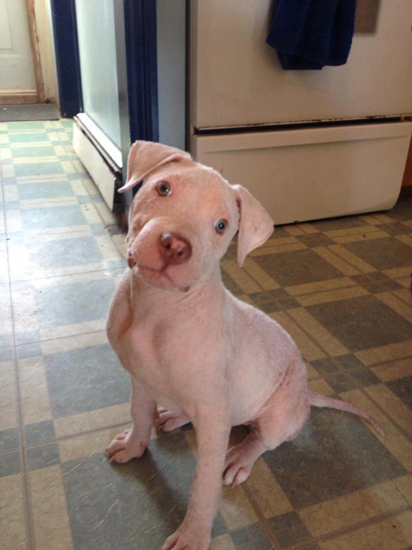 Mojo was only four months old when his life nearly fell apart. The pit bull puppy was surrendered to an animal shelter in Nova Scotia, already carrying the weight of neglect most dogs never know. His body was ravaged by severe mange. His skin was raw, scabbed, and painful to the touch. Even as a puppy, he had learned discomfort far too early.