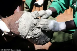 Rescuers gathered buckets of thick, cool clay from the nearby riverbank. Carefully, they coated the injured leg from knee to ankle, packing the clay tightly around the snare. The method served three critical purposes: