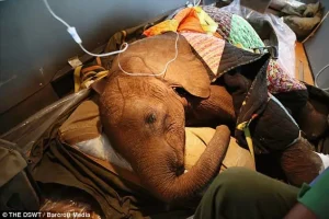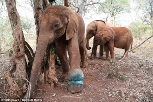 That cry belonged to a young elephant calf, scarcely bigger than a large dog, lying helpless on the forest floor. One small foot was trapped in a poacher’s snare, a cruel loop of metal wire designed to kill slowly. Hour after hour, the wire tightened, cutting deeper into flesh. The leg swelled until movement became impossible. Flies gathered around the wound. The heat burned relentlessly. Too young to understand what had happened, the calf could only call out for a mother who never returned.