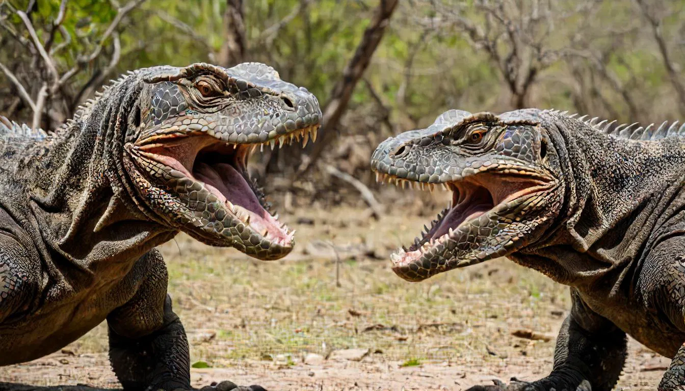 In a rare and dramatic display of power, two Komodo dragons were seen engaging in a fierce fight on Komodo Island. The massive reptiles, known for their territorial nature, clashed in a violent confrontation that lasted several minutes, witnessed by a group of stunned tourists and park rangers.